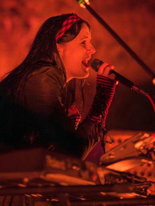 Vyprodaný večer zahájila synthpopová performance Isiolia - zpěvačka Julie Krausová.