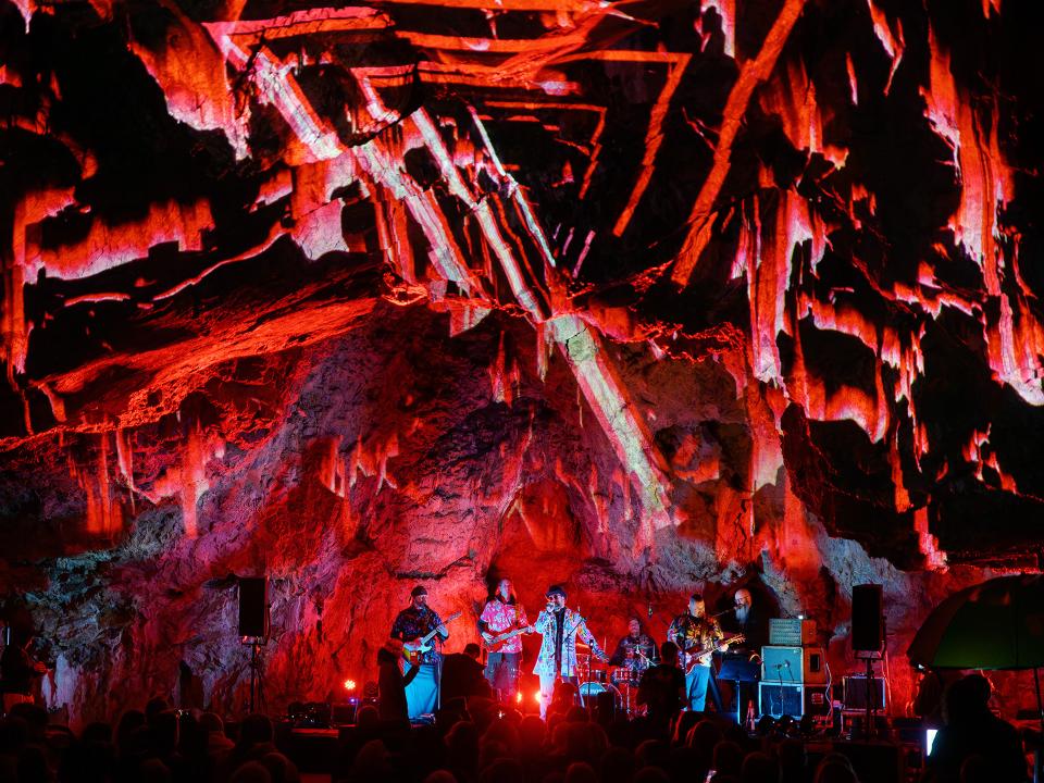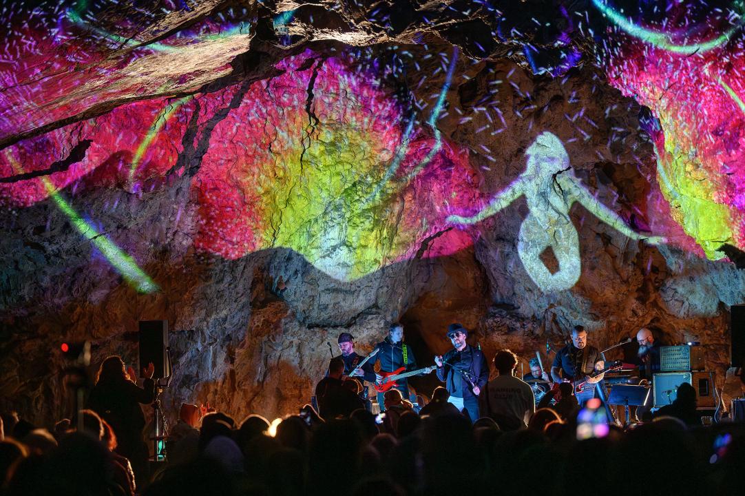 Unikátní videomapping doplnil rockovou show v jeskyni Výpustek 27. 5.
